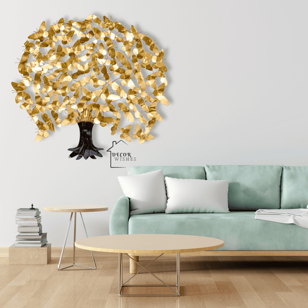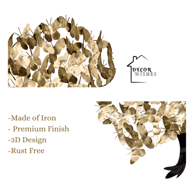 • โœจ Artistic Expression: This metallic wall art takes the form of a majestic tree, with delicate butterflies adorning its branches, creating a captivating fusion of nature and art.