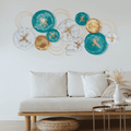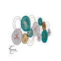 - π Vibrant Elegance: This metallic wall art is a burst of color, featuring multiple colorful metal plates and small, intricately arranged metal rings, creating a visually dynamic and vibrant masterpiece.