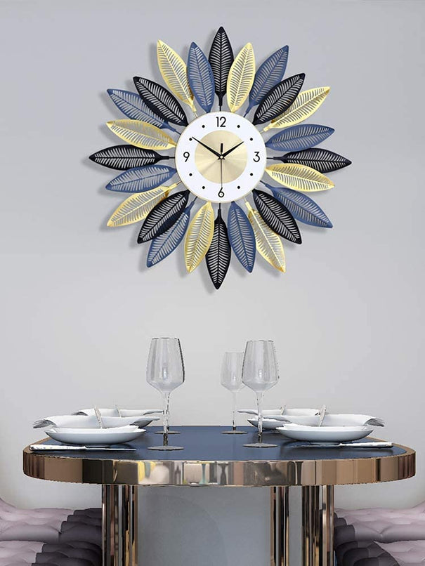 Crafted from high-quality metal, this clock boasts durability and a premium finish that complements a wide range of interior decor styles. Whether your home is modern, contemporary, or traditional, the DECOR WISHES Leaf Metal Wall Clock seamlessly integrates into your space, bringing a touch of luxury and artistry. The metallic finish and detailed design make it a perfect addition to any room, be it your living room, bedroom, or office. The clock’s large size and eye-catching design make it an ideal focal point for empty walls, transforming them into a highlight of your home decor.