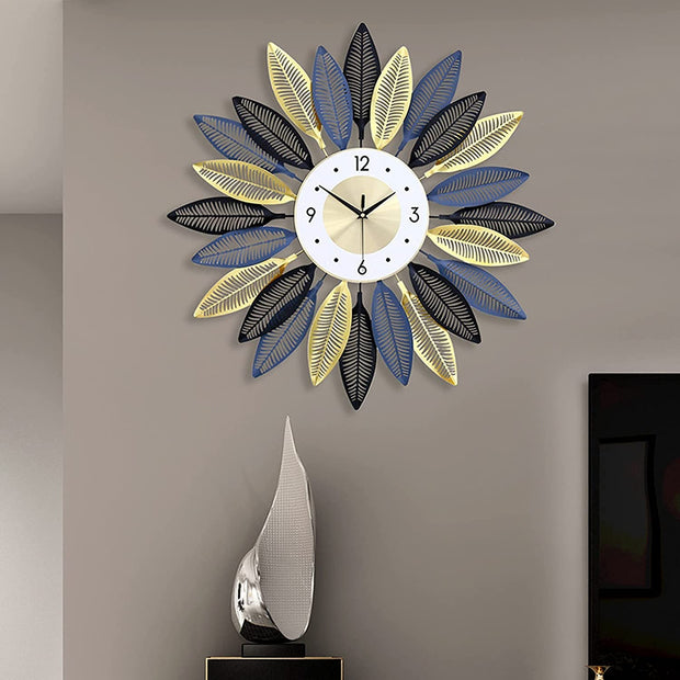 Transform your home with the DECOR WISHES Leaf Metal Wall Clock, a luxury timepiece that doubles as a stunning piece of metal wall art. Designed with a unique sun-shaped motif adorned with intricately crafted metal leaves, this clock is more than just a functional item—it’s a statement piece that adds elegance and sophistication to any room.