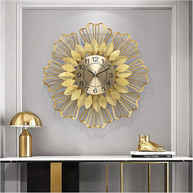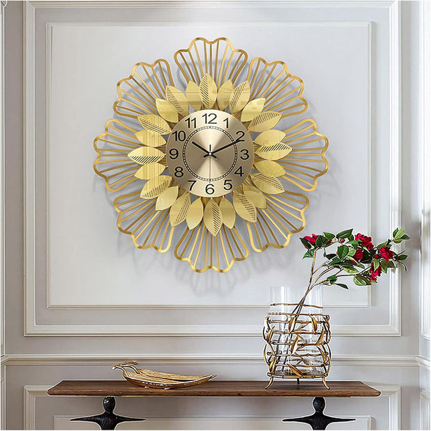 Crafted with precision, the Flower Metal Wall Clock boasts a durable metal construction that ensures longevity and a refined aesthetic. The gold color adds a touch of opulence, making it an ideal centerpiece for any room. Whether you place it in your living room, bedroom, or office, this clock is sure to draw attention and admiration from guests and family alike.